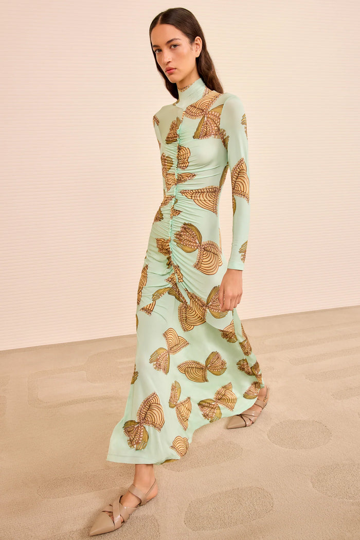 ULLA JOHNSON Koa Ruched Jersey Turtleneck Maxi Dress - Desert Jasper