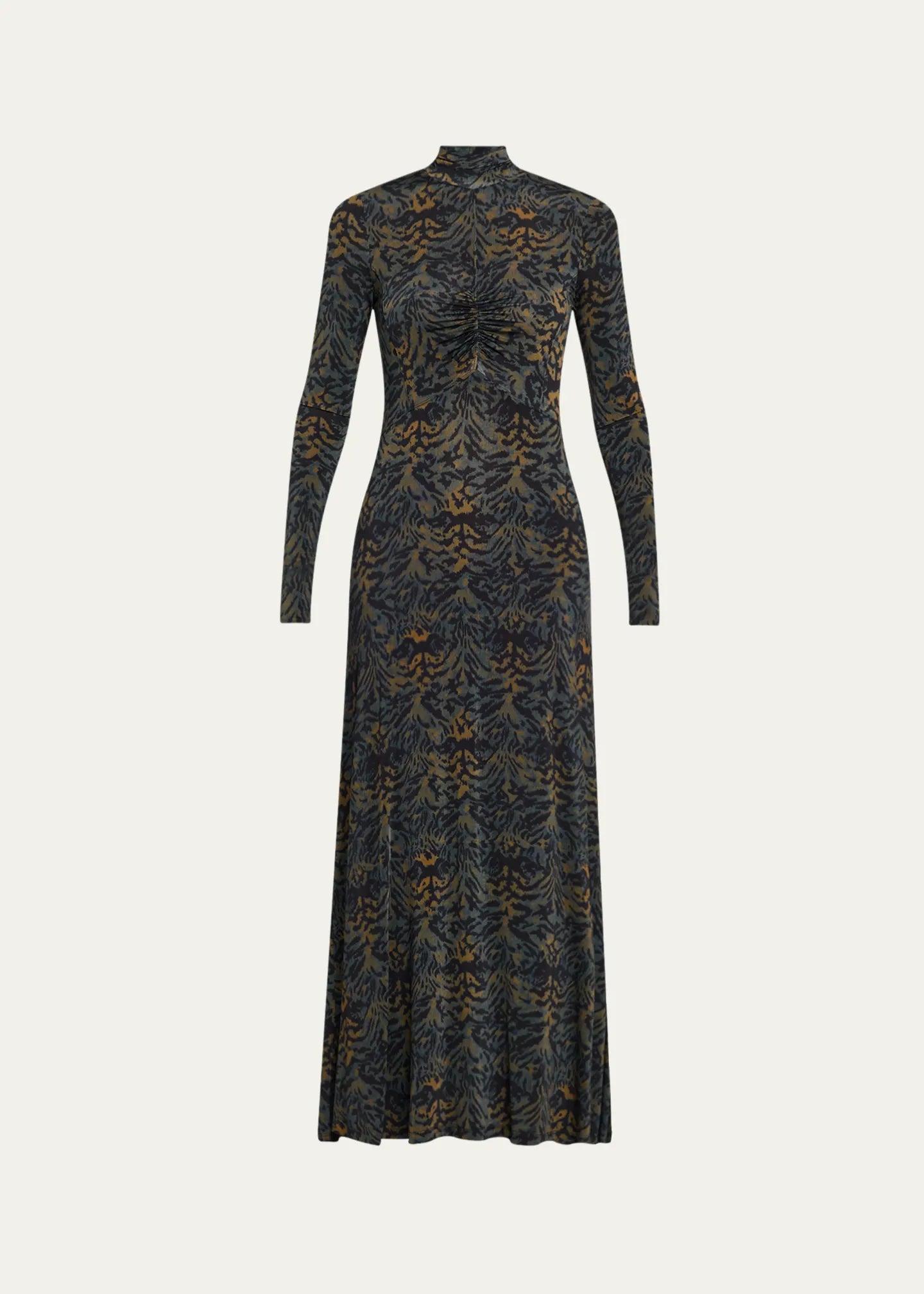 ULLA JOHNSON Koa Ruched Jersey Turtleneck Maxi Dress - Desert Jasper